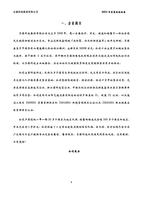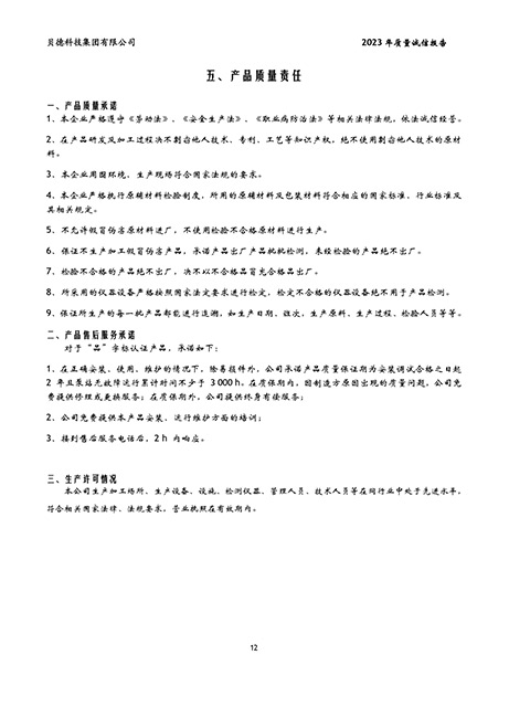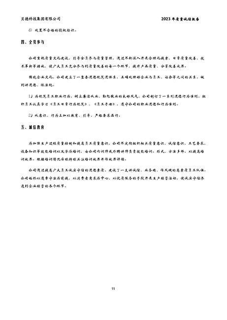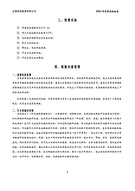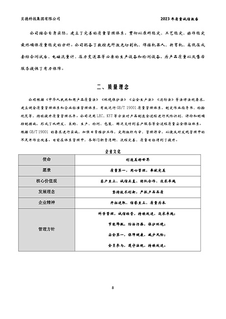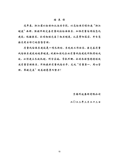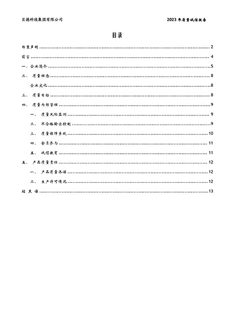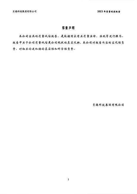 貝德科技集團2023質量誠信報告